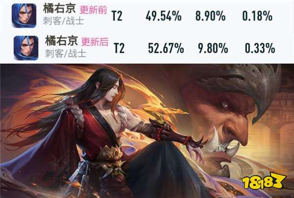 王者荣耀正式服在本周一对五位英雄进行了加强,包括橘右京、甄姬、瑶、张飞、高渐离,其中橘右京和高渐离受到的影响最大,二者的排位胜率出现了大涨的情况,下面和小编一起来看看具体数据吧。
