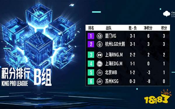 今晚,B组将再迎一战,由北京WB对阵苏州KSG。对双方而言,此战意义截然不同。按照积分情况,WB必须争取以大比分拿下胜利,为获得卡位赛资格增加筹码。而KSG此战无论输赢都已无力回天,已确定升组无望。