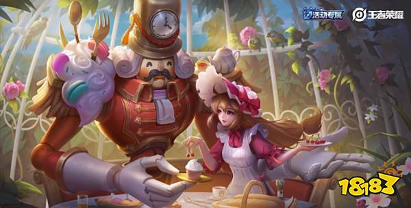 干将莫邪——胡桃夹子的设计风格与米莱狄——胡桃异想国一致,在新皮肤中,干将化身为胡桃夹子,而莫邪则扮演误入奇幻花园的少女,对于误闯而入的莫邪,干将拿出了下午茶进行招待,可以看到海报背景加入了花园、蛋糕、面包等元素。