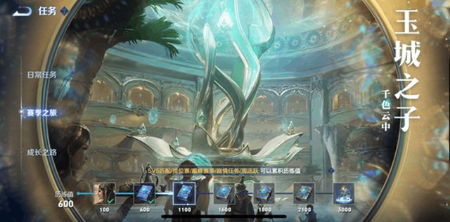 日常任务总奖励不变,数量改为五个挑战任务,每周满500活跃度,可抽自选英雄宝箱(小概率),并增加50历练值(100历练值即可领取赛季皮肤)。