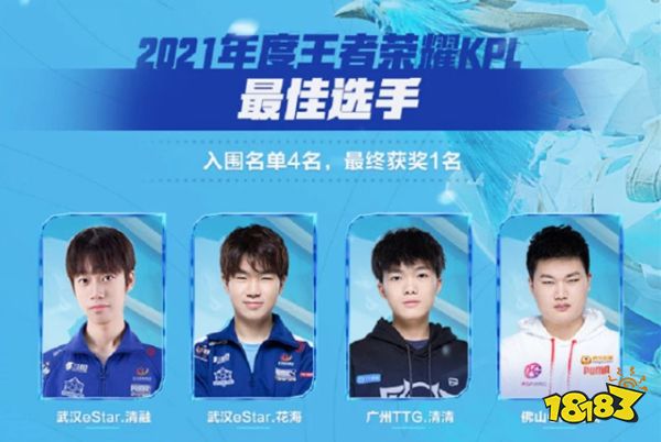 2021年度王者荣耀KPL最佳选手入围四人,为武汉eStar.清融、武汉eStar.花海、广州TTG.清清、佛山GK.阿改。