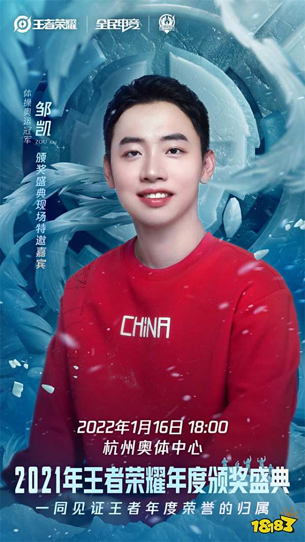 2021年王者荣耀颁奖盛典特邀嘉宾,游泳世界冠军傅园慧、击剑奥运冠军孙一文、体操奥运冠军邹凯将一同来到现场,同大家一起见证王者荣耀年度荣誉的归属!同时也将在表演赛的环节中展现他们的“冠军”风采。