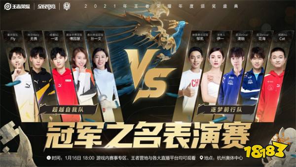 2021年王者荣耀颁奖盛典将进行两场表演赛,由傅园慧、孙一文、邹凯、伊一、KPL选手联合组队的【冠军之名表演赛】与KPL选手组队的【虎年贺岁表演赛】。