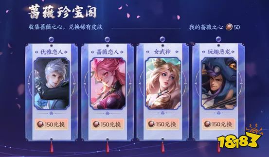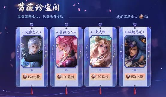 王者荣耀蔷薇珍宝阁一共有哪些皮肤:5款皮肤,分别是干将莫邪-胡桃夹子、孙尚香-蔷薇恋人、赢政-优雅恋人、艾琳-女武神、高渐离-玩趣恶龙。