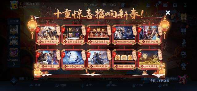 此外,还有一些重磅福利活动已在除夕之前开启,其中就有蔷薇之心活动已于1月30日11点开启,每两个小时自动获得一次抽奖机会(无需登录),每次必得两个蔷薇之心和小概率抽到永久珍宝阁皮肤,活动结束前登录游戏抽取即可。其次,还有微信区的摇心愿(微信——发现——游戏)和QQ区的集卡活动(QQ——动态——游戏中心)已经开奖,必得一个永久皮肤或英雄。最后就是游戏内已开启的小虎市集活动和擂鼓祈福活动, 其中小虎市集活动的永久皮肤奖励将在除夕(1.31)当天开放领取,多赚小虎币必得永久史诗皮肤,而擂鼓祈福活动将在2月4日开奖,多拿许愿铃必得永久皮肤。