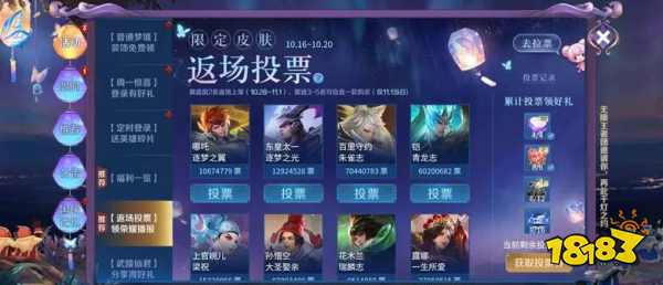 4、最后就是限定皮肤返场投票活动了,高人气的皮肤有机会在这个时候争取返场机会,玩家们也可以给自己喜欢的皮肤努力拉票。