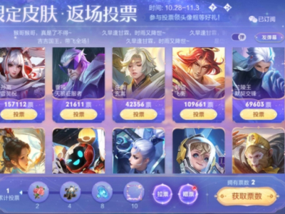 目前投票活动已经开启,每个玩家每天都能拿到三张投票券,登录游戏可领取一张,每日参与一次5V5对局也可以领取一张,而在参与一次投票之后,也可以领取一张。