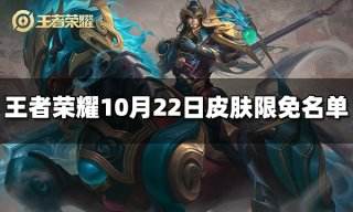 王者荣耀10月22日限免皮肤有:马可波罗-深海之息、芈月-白晶晶、墨子-降魔、哪吒-逐梦之翼、娜可露露-前尘镜、牛魔-奔雷神使、女娲-补天、裴擒虎-李小龙、裴擒虎-寅虎·赤拳、上官婉儿-梁祝、上官婉儿-神器·万象笔、孙膑-寅虎·展翼、孙策-垫爱之约、王昭君-星穹之声。