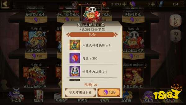用来提升御魂强度的礼包,这次大江山退治卡死了就是泷夜叉姬的天下,没有弄这个也没必要,而且对之后的SP酒吞来说也没有太好的帮助。