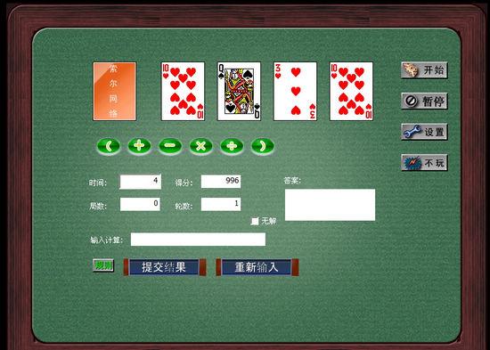 24点游戏是经典的纸牌益智游戏。玩法简单,娱乐性强,老少皆宜。该游戏可以由一个人玩,用一副牌。