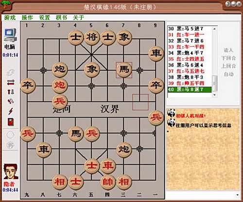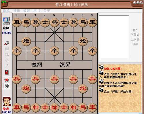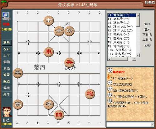 中国象棋人机对战!网络对战!同机对战!棋谱研究!人机对战:很强的智力!有入门、初、中和高级选择,通过段位赛取得和高级别对手对战的权利!同机对战:双人交替走棋,是研究棋谱的好地方,随时可以让计算机帮助分析棋面!网络对战:可以在局域网和Internet上双人对战,具有旁观、聊天等功能,是和棋友切磋的好工具!棋谱研究:还有系统自带的近2000多个精典象棋棋谱,包括:《橘中秘》、《残局攻杀大全》,《梅花 泉》,《现代布局精要》、《中局杀法》、《适情雅趣》和《烂柯神机》等13本秘籍;并且你可以\"自己走试 试\",其定会对你棋艺的提高大有裨益!另外,在对战时还具有让子、悔棋、保存、续盘、摆局、交换棋子、声 音、走棋轨迹显示、闪烁提示和GB-BIG5字体支持等功能!