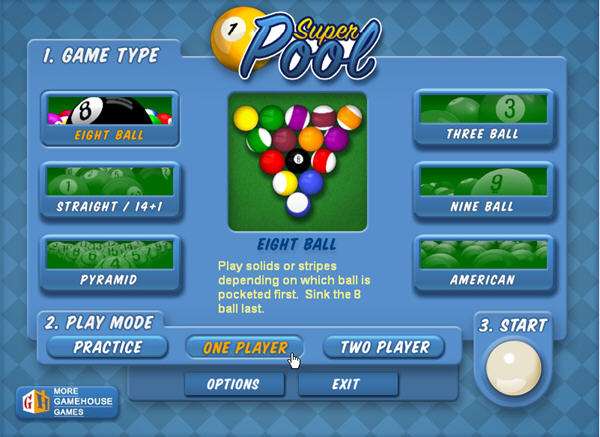台球起源于17世纪,至今已经历了几百年历史,从宫廷贵族游戏发展到如今的竞技、娱乐运动,足以说明台球具有顽强的生命力和无穷的魅力。今天介绍的Super Pool超酷桌球是GameHouse公司开发的一款界面精美,品质优良的三维仿真台球游戏,让你足不出户就可以享受到台球的十足乐趣。