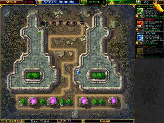 《阿兹卡特守卫战》这是一款独特的Tower Defence(塔防)游戏,阿兹卡特守卫战汉化游戏中你要建造坚强的防御阵线来守护你的家园Azgard,将会有非常多的怪物来攻击你的城市,善加利用路线及各种塔的特性撑过100关。