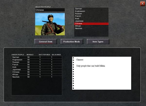 扩展的随机游戏模式,随机模式下产生许多新特点,比如各个国家都有特有的科技和兵种并且有繁多的选项,使玩家无论在PVP还是对战AI都乐趣横生。