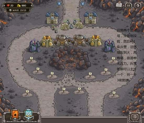 前期飞行单位只有弓箭塔和法师塔能攻击,升级会提升射程射速伤害,4级可以转职成火枪塔和巡林客塔