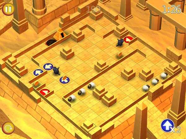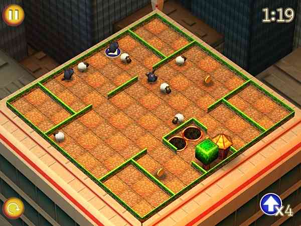 玩家的目标是带领绵羊安全穿越迷宫。为此您需要在田野上摆放箭头,让绵羊们沿着正确的方向前进。带领绵羊们沿着安全的道路回到它们的家,将它们关在那里!箭头的数量有限,在整个旅行中您必须擦除用过的箭头,重新使用。