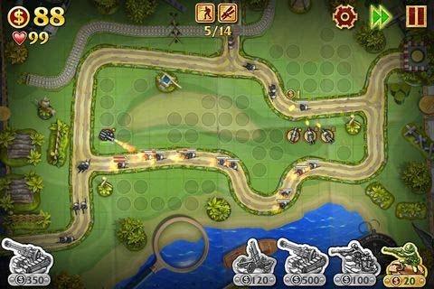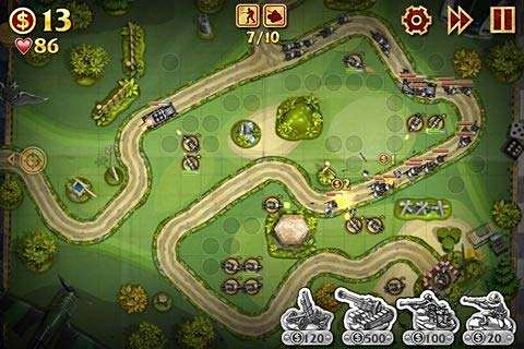 游戏中的防御单位有步兵,喷火兵,加农炮和防空炮四种。每一个防御单位都会有三个升级阶段,同时还会有能力强化分支,可以通过升级来让防御单位具备各种不同的特性。