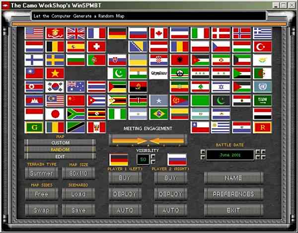 游戏内包含200多张配置好的地图,可直接与AI或者玩家对战。也可以打战役,看着自己手下的新兵一步步成长为经验丰富的老兵。当然最能体现游戏精髓的是随机对战,设定好国家和点数,就可以用这些点数自由配置部队来作战了。武器库是所有游戏中最全面的,数值也经过仔细考究。