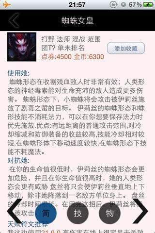* 查看英雄技能,历史背景,攻防值, 新手装备, 内嵌浏览器查看英雄攻略