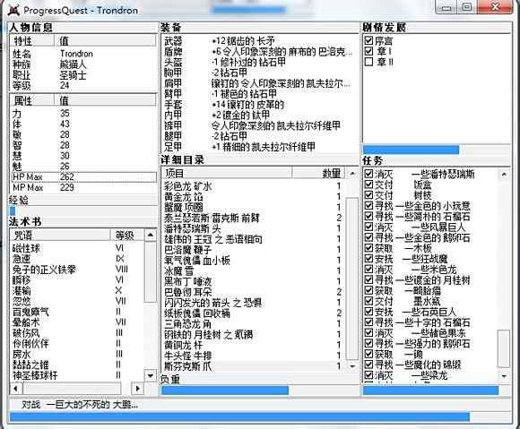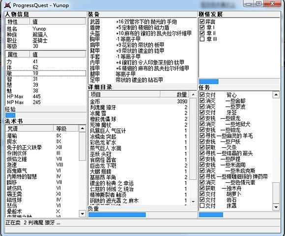 作者将所有冒险游戏的精髓全部抽取出来,然后简化成了各种缓慢前进的进度条!你只需要将游戏挂在电脑的右下角,过段时间看一看,挂的时间越长,人物就越牛。