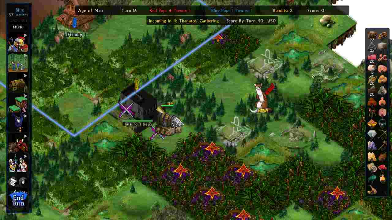 玩家在游戏中发展村庄的同时还需要估计两个种族之间的战斗,所以如何把握好平衡点将会是一个非常重要的部分。游戏中的红色与蓝色代表着两个不同的种族,以及各种隐藏在远处的神兽,切记你的目的是让两个种族和平相处,而非是帮助一方取得胜利。