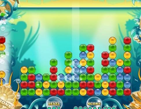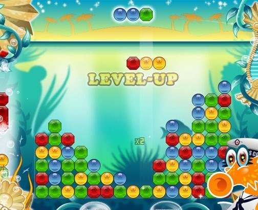 画 面:游戏运用了充满卡通风格的2D画面,主角海马Sally会以多种可爱的造型出现。游戏的元素设计很华丽,五颜六色的宝石晶莹剔透。游戏的画面效果也十分绚丽,爆炸效果颜色丰富,游戏画面引人注目。