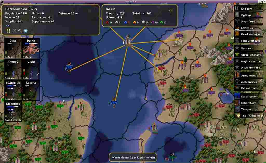 《领土之战4:飞升王座》是一款回合制策略游戏,仿佛是《英雄无敌》和《文明》的糅合体,有多种族,每个种族有各自独特兵种,丰富的魔法,作战界面也如出一辙,喜欢这类游戏的不妨一试。你乃上帝!你已统御万民与众生,但这世上仍有不臣之人与你为敌,必征服他们实现天下一统,你才能神格完备、羽化登仙。