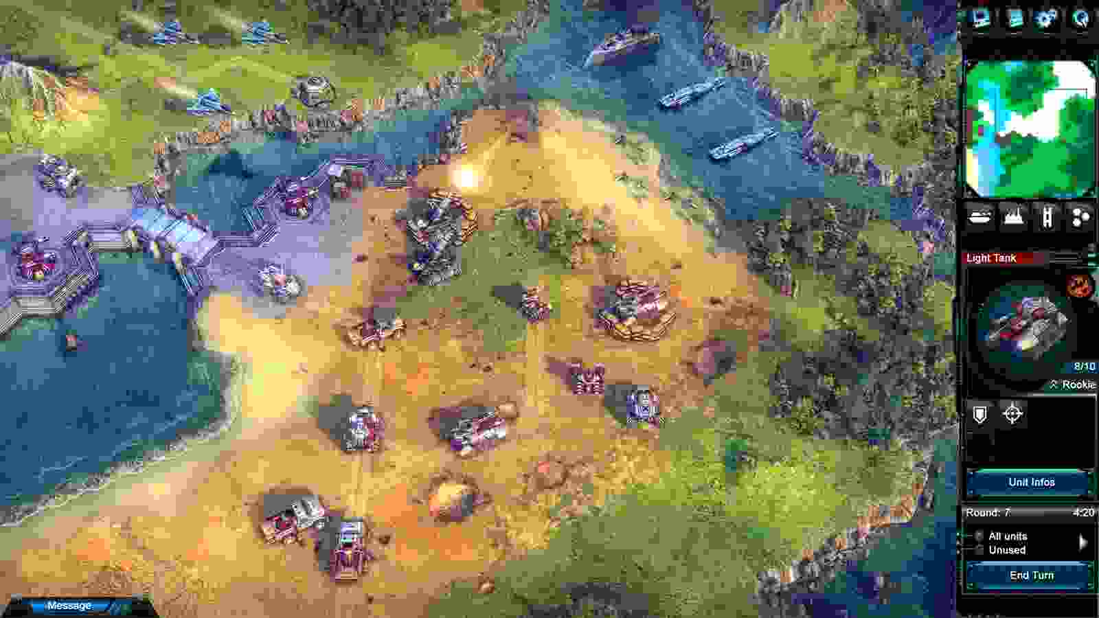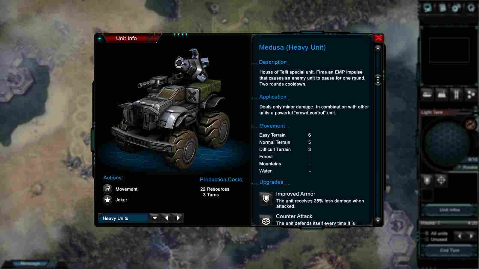 乍一看还以为游戏是红警的翻版,其实游戏是基于传统的六角格风格回合制策略游戏。游戏中对于各部队、单位、装备等的信息需要充分了解,合理的利用,以发挥最大威力。游戏中的装备可以不断升级改进,以便能更好的投入到战斗中。