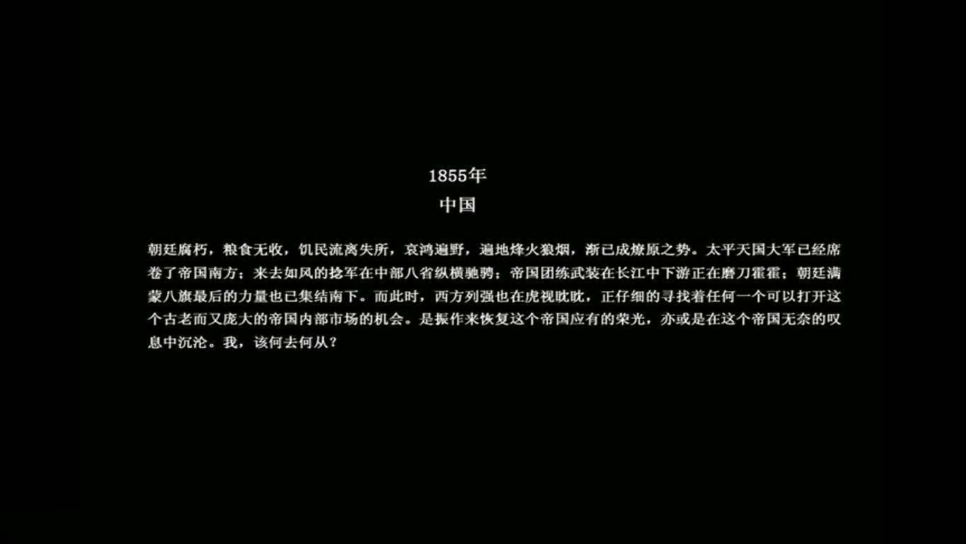 1855年,太平天国的最辉煌逐渐逝去,但是天京犹在,石达开犹在,这场波澜壮阔的中国历史上最后一次的农民起义是一场烈火,燃烧在浩荡华夏的每一寸土地。京畿之畔,中原大地上揭竿而起的捻军也终于会盟一处,共事大业。与此同时,清帝国依然还统治者中国大部分土地,借助洋人的帮助正在做着最后的变革。在与太平军作战中逐渐成长起来的湘军和淮军逐渐装备了新式的火器,训练出了新式的军队。曾经的八旗子弟震惊于太平天国的威势,又重新拿起了刀枪剑戟,踏上了马鞍,驰骋于大江南北,保卫祖宗基业。但是,真正的威胁来自海外,英、法、荷、日等帝国主义列强对中华大地垂涎三尺,虎视眈眈,随时可能踏上中国的土地,蹂躏中华儿女。置身千年未有之变局,中国该何去何从?励精图治,再现康乾盛世;抑或大火燎原,涅槃重生,实现太平盛世。帝国的叹息,由你来改变帝国的命运。
