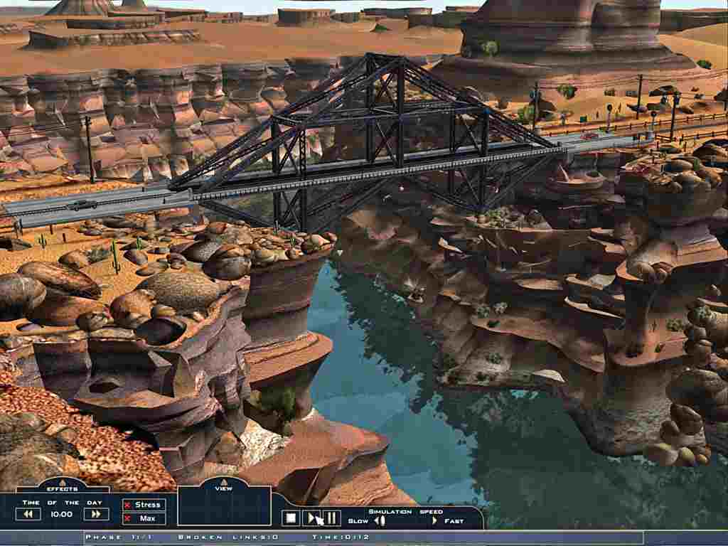 游戏为玩家提供了一个独特而华丽的环境,包括沙漠与茂密的森林,对玩家在战略与多种类型的桥梁工程设计方面的能力提出了挑战,一旦桥梁建造完成,电脑将通过旅客列车、重载货车与桥下通行的船只来检验桥梁设计水平与稳固程度,桥梁是“坚持”住了还是最终“倒”了,就看你的水平了。游戏中加入了自然环境对玩家的挑战,如地震等,而游戏的智能评分系统也将从玩家的设计和预算成本方面给玩家在建桥方面的水平打分。