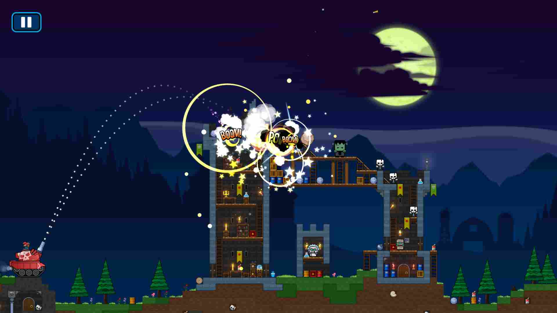 《怪物弹药》是Amazing Atom制作,MumboJumbo发行的一款策略游戏,游戏玩法有点类似于《愤怒的小鸟》,属于射击控制类游戏,《怪物弹药》提供了多种功能效果不同的炸弹,你可以根据需要选择它们来轰炸堡垒,捣毁怪博士的恐怖研究。