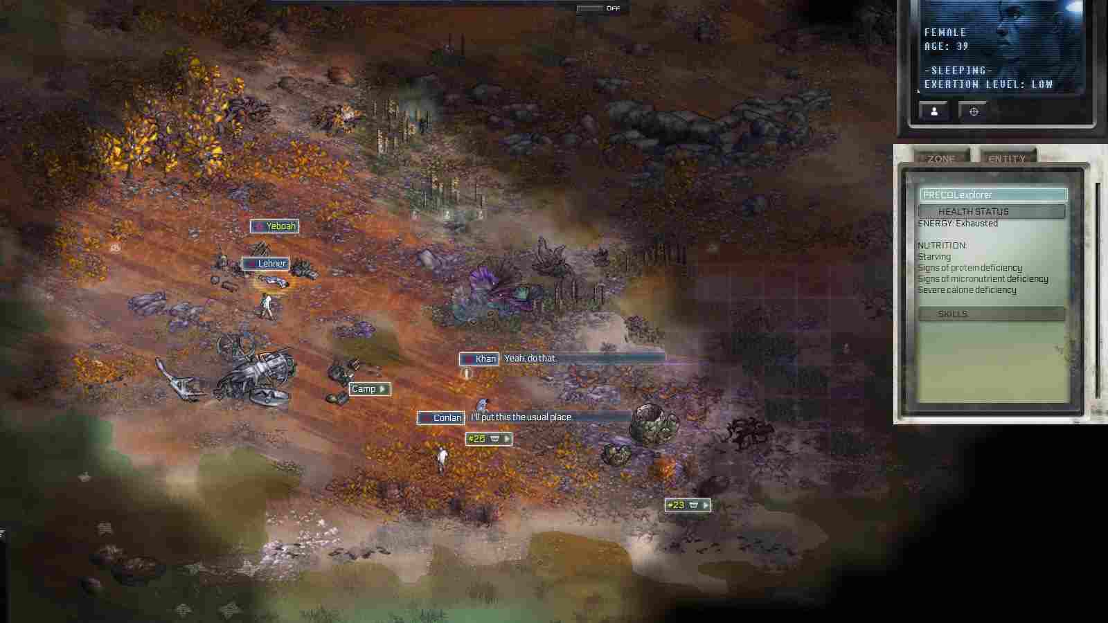 游戏画面较暗,色彩也不丰富,很好突出了荒凉的感觉。游戏采用俯视角,各种建模不大,整体上让人感觉这个世界很大。游戏中所要做的事情很多,但关键是要生存下去。
