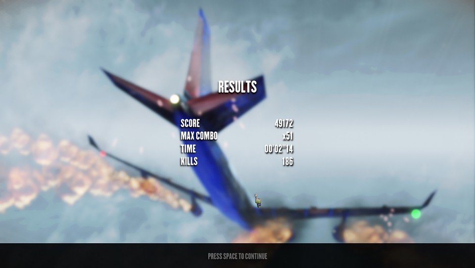 游戏主要考验玩家在这种极端情况下的存活时间以及最终能够甩下的僵尸数量,游戏看似非常荒诞奇葩,但是游戏操作的物理性和飞行的动态效果也是非常有趣的。