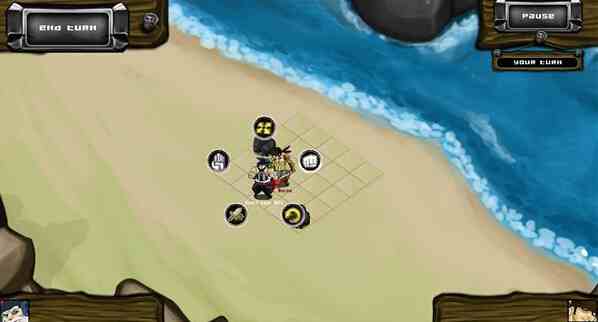 比较经典的策略战棋玩法,每次战斗开始前,通过石头剪刀布的游戏来决定由哪一方先行动,胜者先行。之后,你可在规定的方位决定你的人物位置。