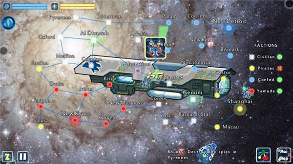 玩家可以通过公会获得诸如交易、运送货物、追捕走私犯等任务,完成任务后获得金币。 在商店中可以对飞船进行改装,比如火力、护盾等,也可以通过交易获得一些消耗品.操作上鼠标控制移动,左侧界面显示可以使用的技能,例如护盾、飞弹等,通过点击触发,不够人性化。