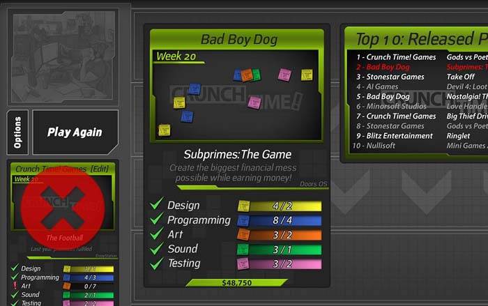 你的计划就是在对手之前完成你电视游戏的发展,为了这项任务你必须完成不同部分的工作:节目设计、流程安排、美工、声音以及测试。在每一个回合中你可以使用一张或多张卡牌,每个回合你手中最少会有5张牌。