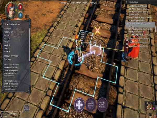 游戏中玩家控制一个女战士和一个机器人,他们各自都有近战和远程攻击的能力。每个战斗回合开始前,女战士有焦点可以和机器人分配,刚开始有四个,不过他们需要在一定的距离内,否则机器人将无法得到焦点。