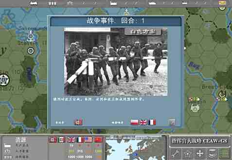 《战场指挥官:欧洲战争》是一款不错的二战类策略游戏,游戏上手比较容易,从1939到1944拥有六个史诗剧本,超过50种的科研项目,12个不同的兵种单位,包括陆战、空战和反潜战,丰富多样的玩法,一定能让二战迷们满意。