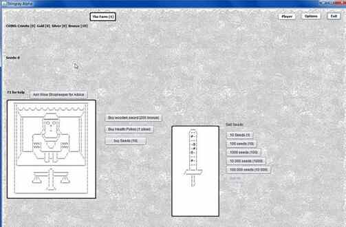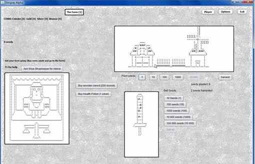 《刺鳐》是一款类似挂机游戏的小游戏,开始我们需要买种子来种地以赚钱,知道我们能购买武器解锁新的场景,当你不知道怎么办的时候,可以点击人物上面的建议按钮来获取建议