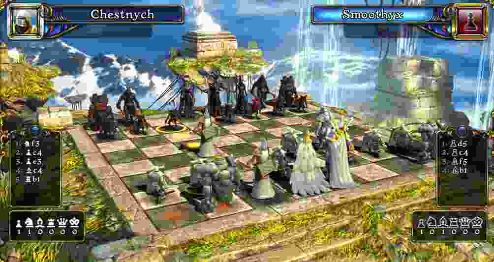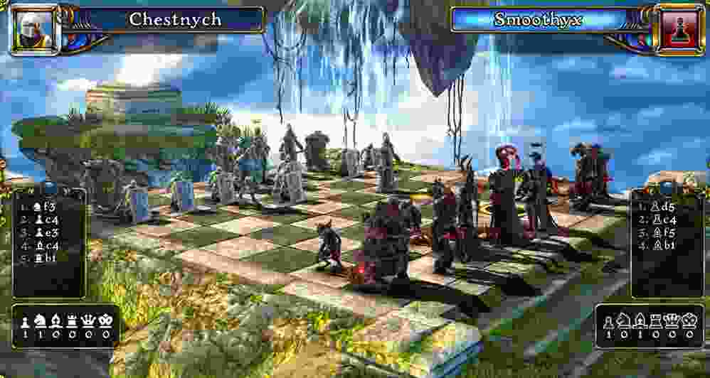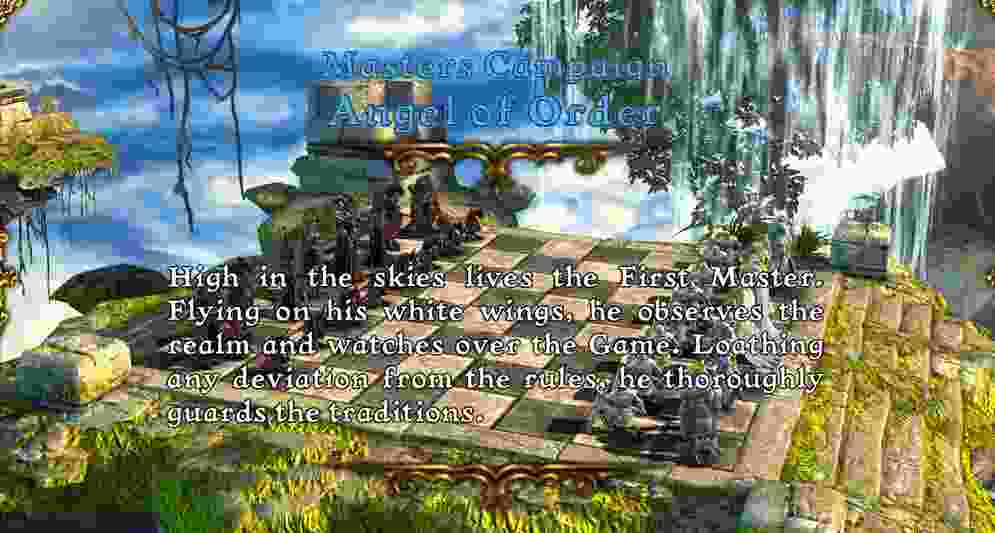 传统的黑白双方被改成了一方是身着闪光盔甲的勇敢骑士组成的光明军队,而另一方则是由恶魔和凶残的魔像所组成的黑暗军团。每一方在玩家控制它们移动的时候 都会有复杂的动画,使得它们栩栩如生,随时准备参与战斗。若是棋子移动到一个已经被敌人单位占据了的格子的时候,它们将展开一次残酷的对决,力图在血腥的 战斗中将敌人从棋盘上拿下。