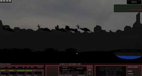 《战争阴影》是款制作很简单的游戏,整体画面很阴暗,给人相当压抑的感觉。游戏连基本的模型也没,不管是什么单位都是一片黑,并且单位被击碎时动画也很糟糕。不过游戏的策略战术性还可以,对于出兵和金钱的控制比较讲究,喜欢的玩家可以来试试。