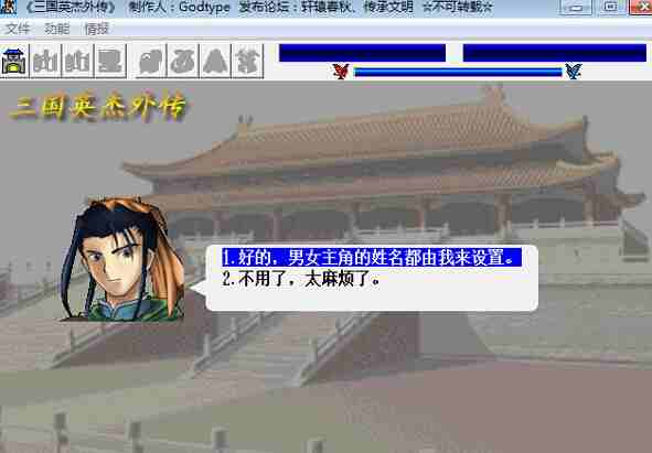 1、旧英杰传+曹操传融合而成的系统,使用伪随机数进行概率处理。