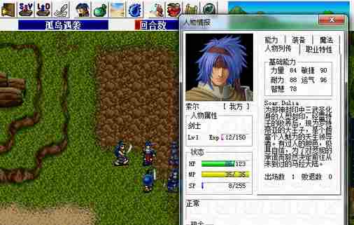 剧情:靠近敌军本阵,全能力上升,后方出现敌军。全部主动出击,不同难度,提升的能力不同。第2到7回合,每回合北方出现两个骑兵,并且两个骑兵攻击,防御,移动力上升。