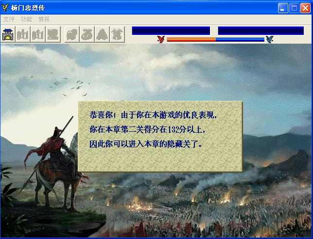 6、由于现代人返古后的加入,使游戏故事的延展得到了有利的支撑,救杨业、七郎等由不可能成为可能,当然要看玩家的造化了,当然救了杨业后会不会改变一些历史,告诉玩家,不会!游戏设计将采用另外言幻的方式,使杨业、七郎等在游戏的某些关卡以神军出现。当然以前没有救出,也就不会出现。