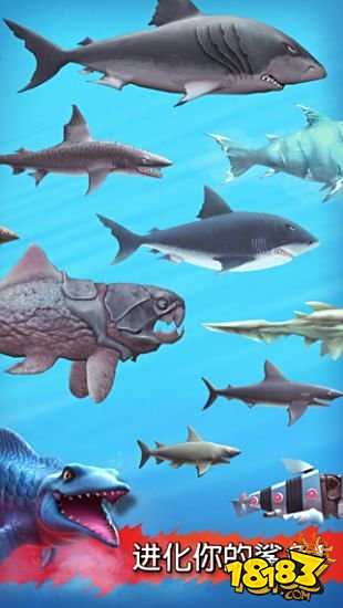5、逐渐解锁更多水下凶猛野兽:灰鲭鲨、锤头鲨、虎鲨和无敌的大白鲨。