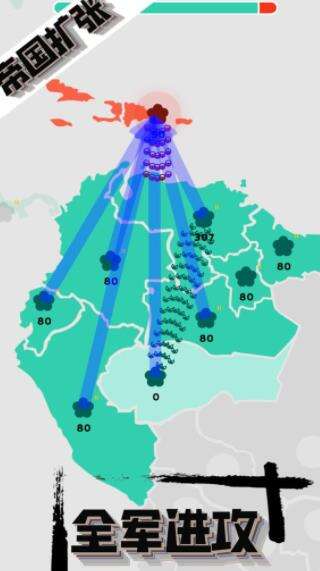 《帝国扩张》是一款即时OA战略游戏,玩家通过合理的派遣兵力,进行领地守护及攻占,最终击败敌人占领全图,取得胜利。游戏之初,玩家会有少数已占领的领地,可以源源不断的生产出士兵,通过积攒士兵以及对地方操作的判断,在保住自己已占领的领地的情况下,合理出兵进行攻占敌方领地。开动大脑,为了帝国扩张而战,将属于你的颜色铺满整个地图!