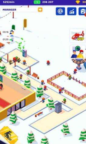 1、玩家将在游戏中采用适宜的置放来运营滑雪场,轻轻松松的来当做老板。