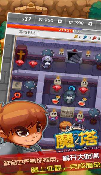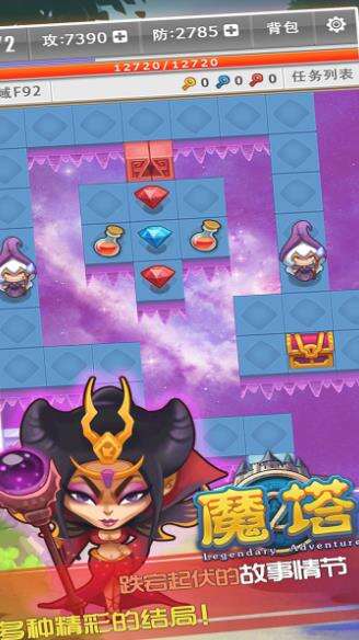 玩家一次只能完成一个楼层. 寻找能够打开通往下一楼层楼梯的大门钥匙. 除了50个楼层的魔塔外, 你还能探索其他多样化的世界,包含地牢和魔塔外区域. 透通简单的点击和拖拉动作,你能够顺畅地游玩. 各种插图和符号将引导你了解故事和完成任务而不需要依赖文字.