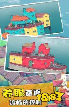 ·色彩丰富的小镇,在屏幕上自动滑动点击,生成不同类型的房屋