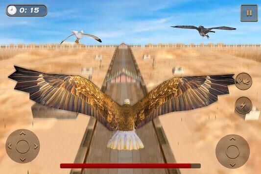 赛鸟模拟器,游戏玩法内容丰富,玩家可以感受翱翔天空的畅快,只要甩开其他对手就可以了,很多动物都说自己的速度第一,空口无凭,用实力让这些动物闭嘴,我老鹰才是动物界速度最快的,获得第一名将获得积分,你要跟其他的鸟类比拼速度,证明自己的实力,控制老鹰的飞行高度,调整好角度,躲避障碍,第一个冲过终点,超越其他的鸟类。